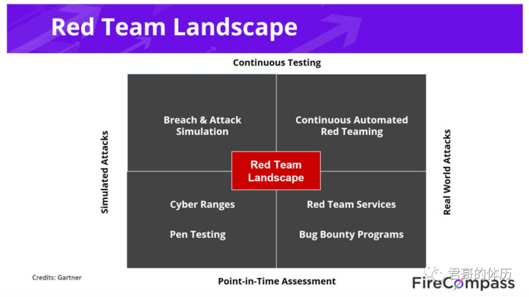 安全有效性验证不是一个新话题,从防守者视角的风险评估,安全检测,第三方认证均是传统的安全有效性验证方式,在持续安全运营中,安全态势感知,SOC、SIEM、XDR等均通过对漏洞,威胁,事件的数据驱动关联分析中发现相关问题,进行整改,防守者视觉基于NIST的IDPRR模型建设安全能力,无论从传统的基础安全进化为安全滑尺的威胁情报和主动防御高级阶段的Gartner可持续监测的主动防御架构,尽管在自动化、智能化安全防御能力建设上建立了纵深防御的架构,在面对APT组织的高可持续性攻击场景下,是否有效,仍需要从攻击者的视角观察和检验。安全渗透测试(PT)是作为以攻击者视角验证安全建设的有效性是常见的手段之一,但渗透测试的随机性和不确定性,依赖于安全渗透测试专家团队的攻击能力,其覆盖的范围,渗透测试的结果与安全控制能力的有效性并不能划为等号,盲目的信任渗透测试的结果,未免有掩耳盗铃的嫌疑。如何能实现全面、系统、体系化的渗透测试,是个值得研究的话题。而MITRE的Att&CK的TTP框架,从攻击者视角对马丁杀伤链各阶段的战术、技术、和过程进行麦肯锡MECE的动态跟踪分析,为全面从攻击者视角评估安全控制能力有效性提供了理论基础。攻防演练的常态化,企业建设或采购第三方负责攻击者视角验证安全控制有效性的红队的安全能力是一种必然趋势,红队担负攻击者视角验证企业安全控制的有效性,需要考虑红队需要具备能力的标准化,持续化,自动化趋势。一、BAS成为当下有效性验证的热点
