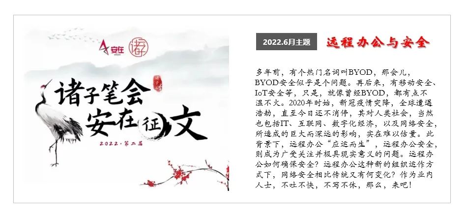 自2022年5月起,“诸子笔会第二季”正式拉开帷幕。经过对首届活动复盘,我们在坚持大原则、大框架、主体规则基础上,优化赛制特别是奖项设置和评奖方式。13位专家作者组成首批“笔友”,自拟每月主题,在诸子云知识星球做主题相关每日打卡,完成每月一篇原创。除了共同赢取10万元高额奖金,我们更要聚焦甲方关注,发掘最佳实践,弘扬分享精神,实现名利双收。本期发文,即诸子笔会月度主题来稿之一。